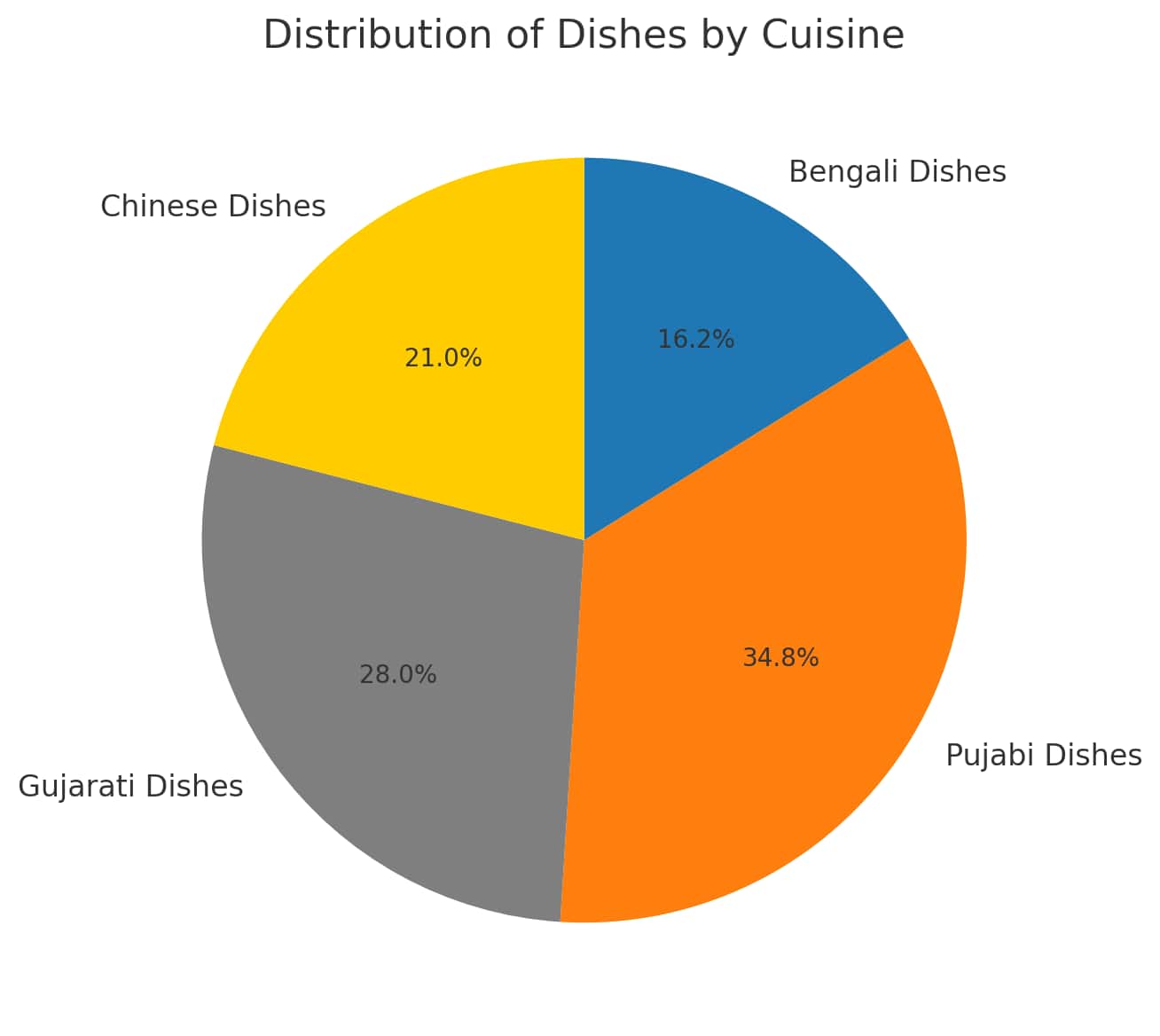 1. Find the average amount collected from the sales of Bengali dishes, Punjabi dishes and Gujarati dishes.