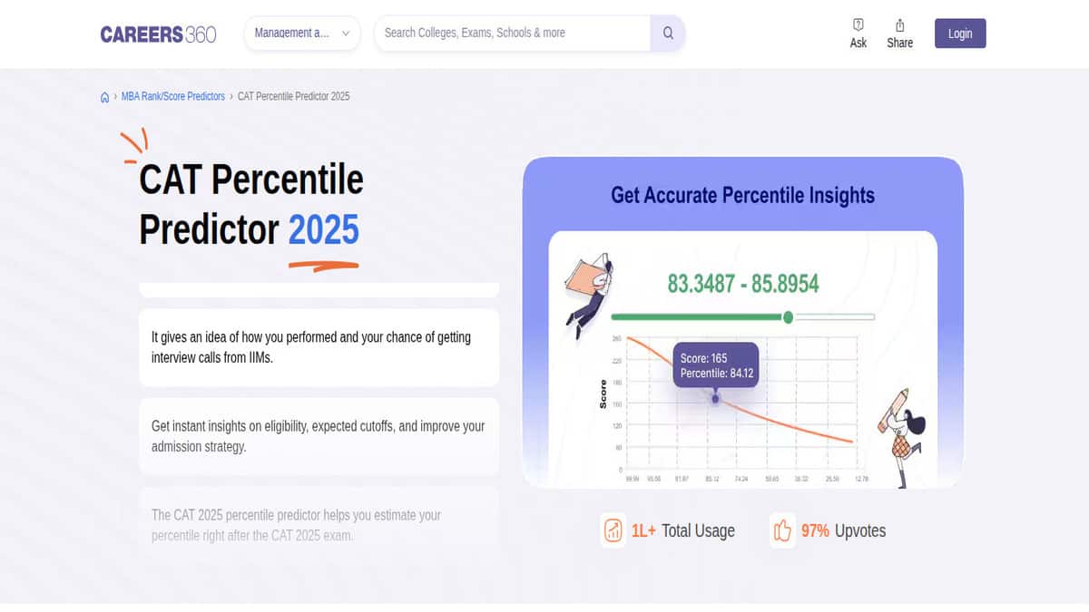 MBA aspirants, sat for the IIM CAT 2025 on November 30, held in three shifts, can check their CAT 2025 percentile using Careers360's CAT percentile predictor.