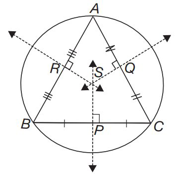 Circumcircle: There here is a unique circle passing through the three vertices A, B and C of the triangle. This circle is called the circumcircle of the ∆ ABC. Its center and radius are called respectively the circumcentre and the circumradius of the triangle.